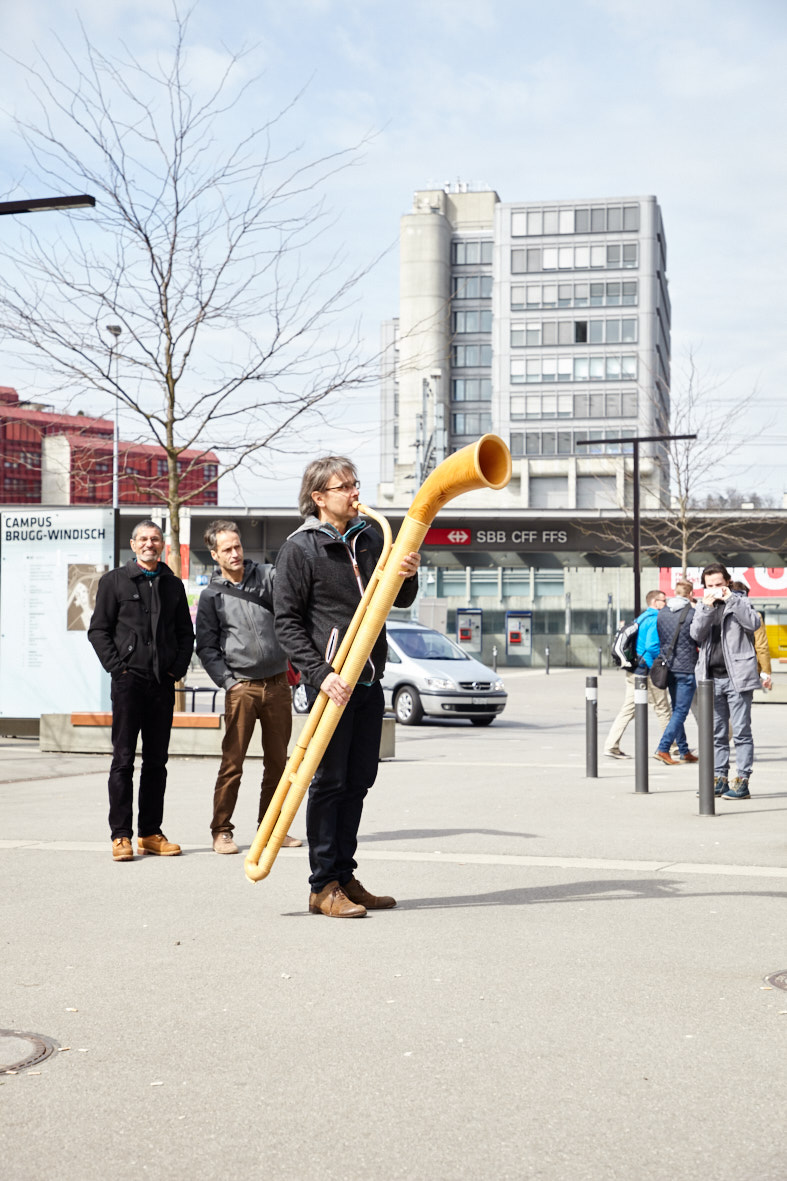 Diesen hat er sich über Jahre hinweg in befruchtender Auseinandersetzung mit anderen Kulturen, fremden und heimischen Räumen zugelegt. Der Campus Brugg-Windisch fungiert als weiterer Ort der musikalischen Befragung: Auf seiner Erkundungstour durch die FHNW erforscht der Musiker mit seinen speziellen Blasinstrumenten auf einem klingenden Rundgang Vorplatz Treppenhaus und Gänge. Er erzeugt dabei ungewohnte, poetische Resonanzen. Interessierte folgen einem inspirierenden Konzert und eigenwilligen Geschichten zu Hörnern aller Art.