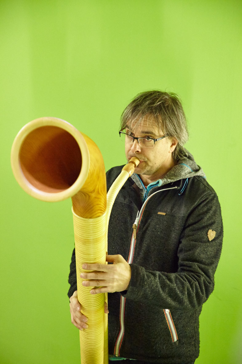 In seiner Produktion „StreiffTöne mit Alphorn“ schafft Balthasar Streiff mit Hörnern, Gehörn und anderen Röhren einen einzigartigen Klangkosmos.