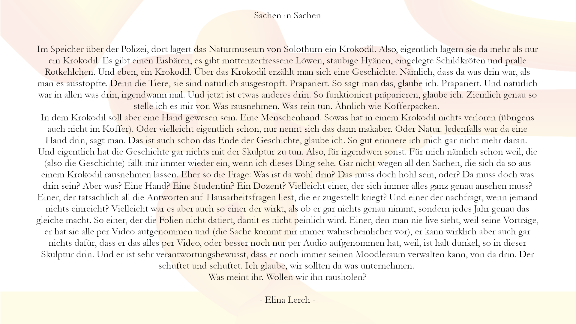 Galerie1.pngAlessio Heberich.png2.pngChrüsimüsi Mona Köhli.png3.pngcomming soon.pngDas solothurner Ding Tamara Häuser.png4.pngDas solothurner Ding Thomas Senkbeil.pngdasobskureobjektderpädagogik.pnghinabhinau und hinein Gina de Pellegrini.png5.pnghirn.pngmirjam oberholzer.pngMomo Schraner.pngNadja Rothenbühler.pngObjekt solheure gerit schütz.pngobjekt solheure peter keller.png6.pngSachen in Sachen Elina Lerch.png