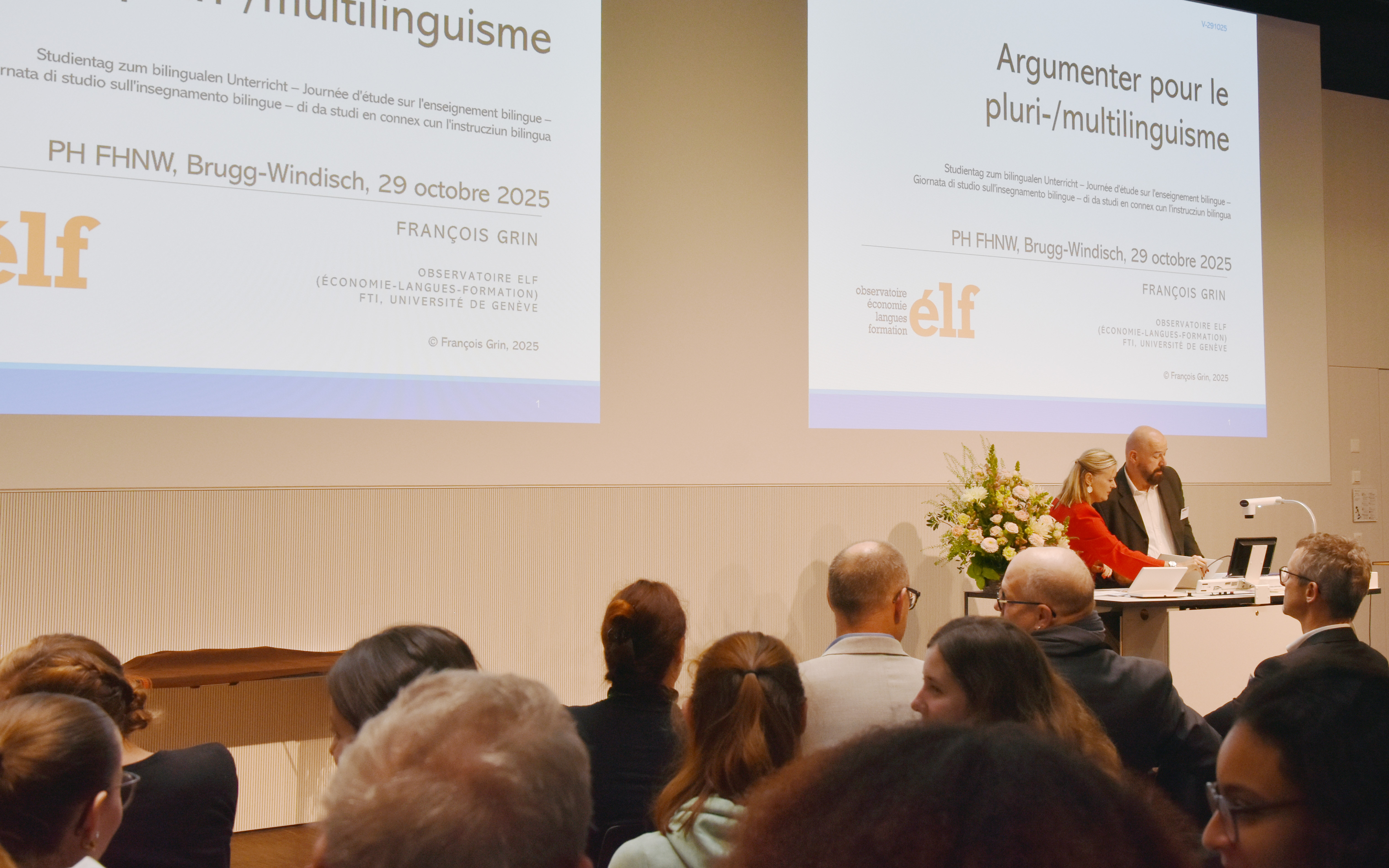 Am 29. Oktober fand am FHNW Campus Brugg-Windisch die Tagung «Bilingualer Unterricht in der Schweiz: réalités, modelli, visionas» statt. Der Anlass bot einen Überblick über bilinguale und immersive Praktiken in der Schweiz mit ihren unterschiedlichen Modellen und kantonalen Besonderheiten. Lehrpersonen, Schulleitungen, Dozierende, Studierende sowie Vertreterinnen und Vertreter von Verwaltungen und aus der Bildungsforschung trafen sich, vernetzten sich und tauschten sich über Best Practices aus. Die Tagung wurde von der PH FHNW und der PH Bern ausgerichtet.