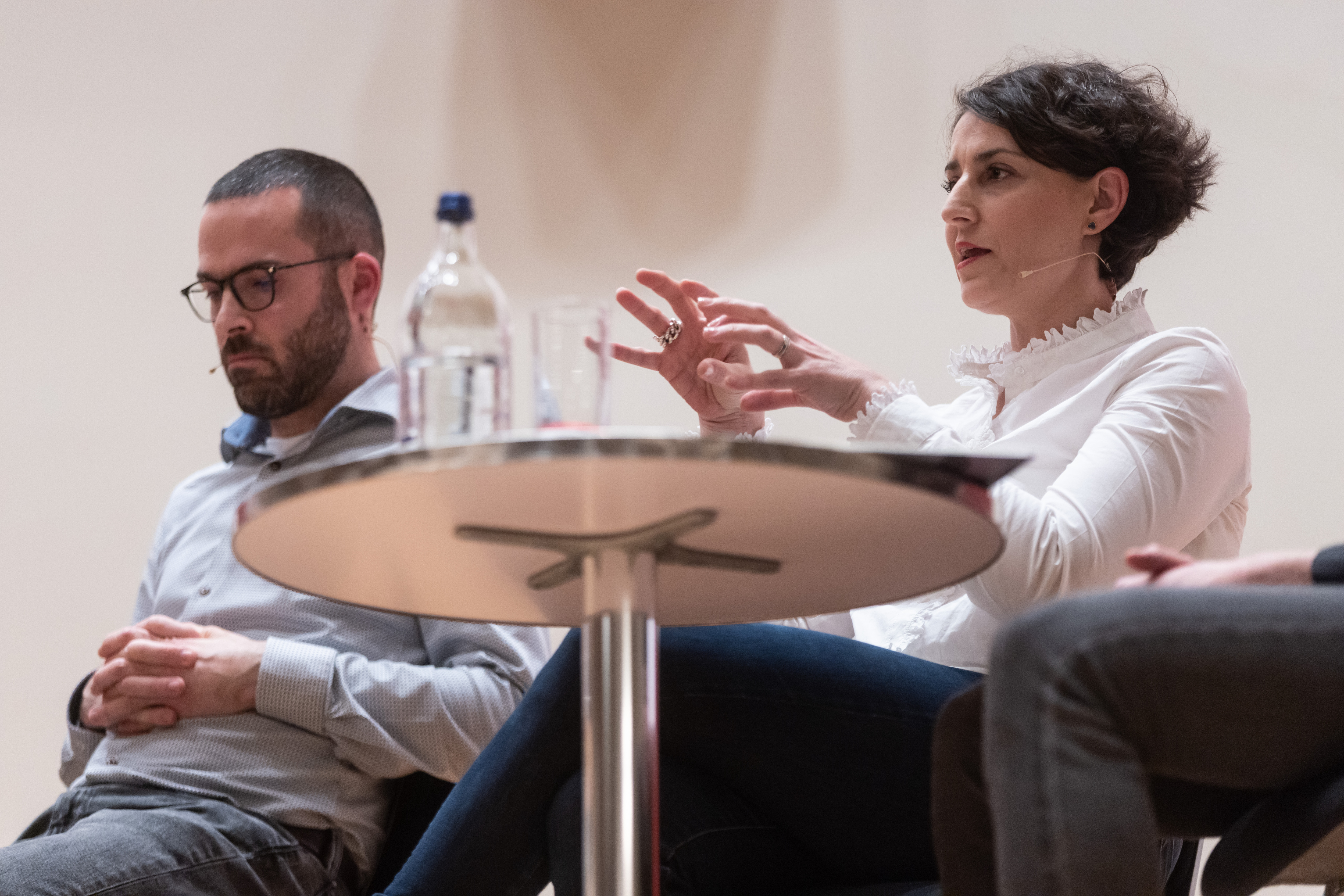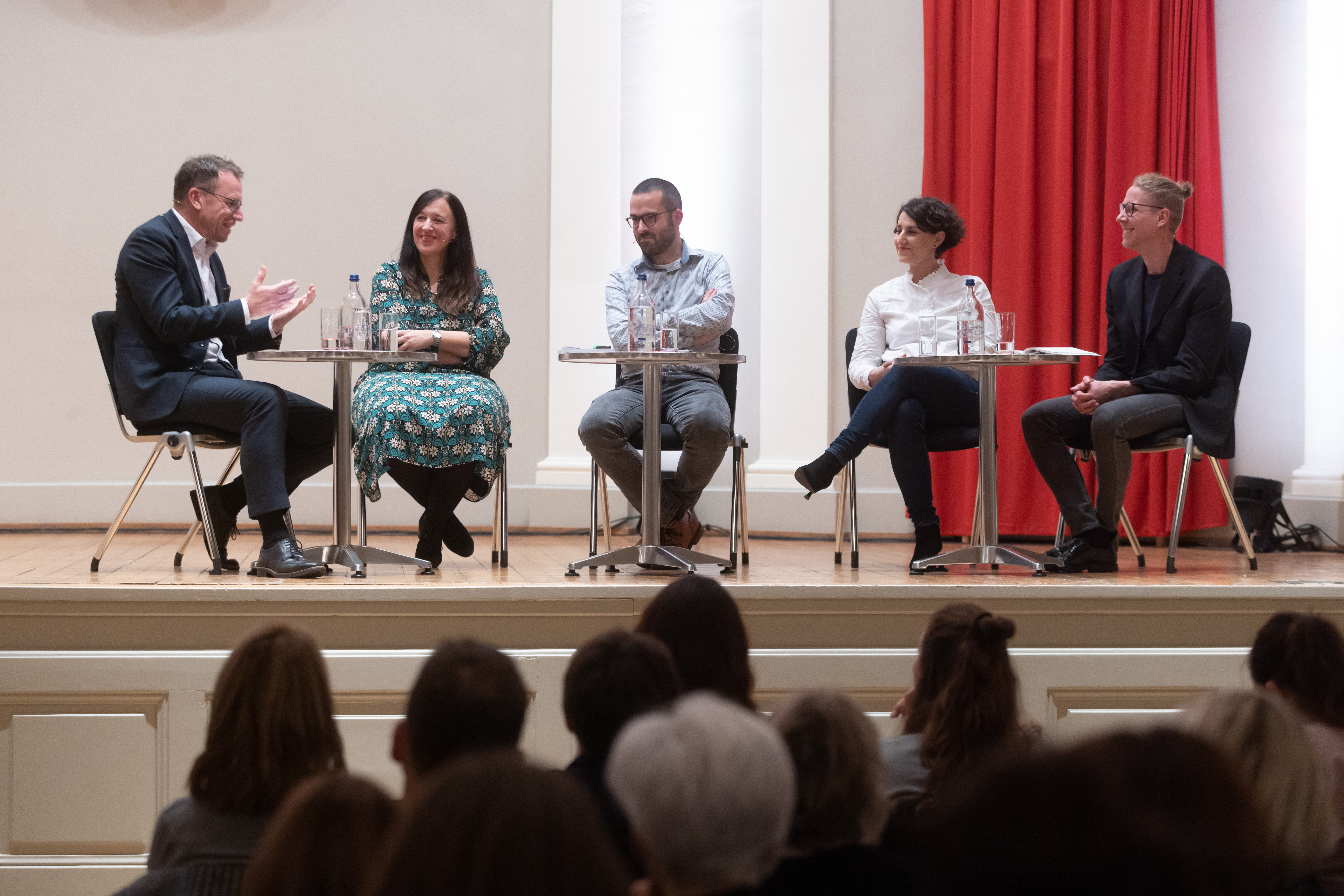Moderiert wurde die Diskussion von Wissenschaftsjournalist Beat Glogger. Mitdiskutiert haben Michaela Knecht von der Hochschule für Angewandte Psychologie FHNW, Nicola Cianferoni vom Staatssekretariat für Wirtschaft SECO, Sandra Schwendener von der Helsana Versicherungen AG und Fabian Leuthold von der Fachstelle UND. (v.l.n.r.)