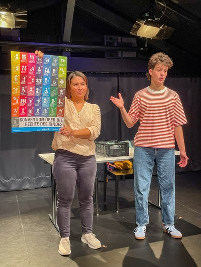 «Es ist wichtig, dass Kinder und Jugendliche spielerisch und durch viele unterschiedliche Methoden mit solchen Themen oder auch mit Kinderrechten in Berührung kommen», findet auch die Vertreterin von UNICEF Schweiz und Liechtenstein. Die Organisation hat die Entstehung des Stücks ebenfalls finanziell unterstützt und damit Neuland betreten: «Für uns ist es ein sehr spannendes Experiment, um uns zu überlegen, wie wir das Material, das wir erstellen, wirklich zu denjenigen bringen, die es brauchen, also Kinder und Jugendliche.»