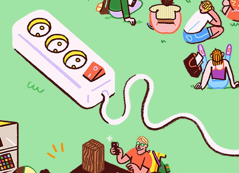 Besucher*innen der Campus Bibliothek Muttenz haben seit Januar 2022 die Möglichkeit, kräftig in die Pedale zu treten. Sie können sich in ihren Lernpausen bewegen und ablenken oder das Gerät auch während des Lesens nutzen. Indem das Fahrradergometer beim Radeln Strom erzeugt, gibt es zudem einen umweltfreundlichen Mehrwert: Die grüne Energie, die durch die eigene Muskelkraft erzeugt wird, kann zum Aufladen von Smartphones, Tablets, Handys oder Laptops genutzt werden. Das grüne Rad macht die Bibliothek als Lernort attraktiver und sensibilisiert zugleich für das Thema Nachhaltigkeit.