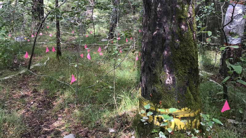 Expanding the artistic research on volatile emissions, the resin, responsible for the pine scent, was harvested during the various field trips to Pfynwald and transformed into the volatile liquid of turpentine and colophon sculpture, accompanying VR installation.