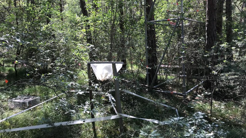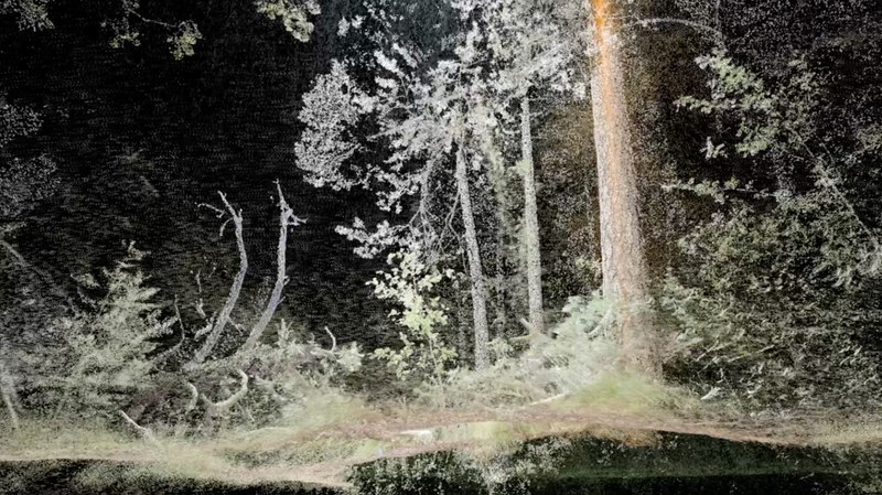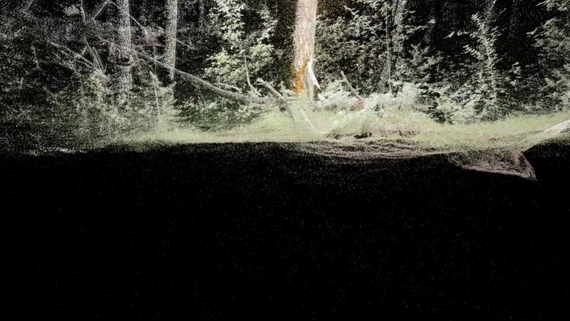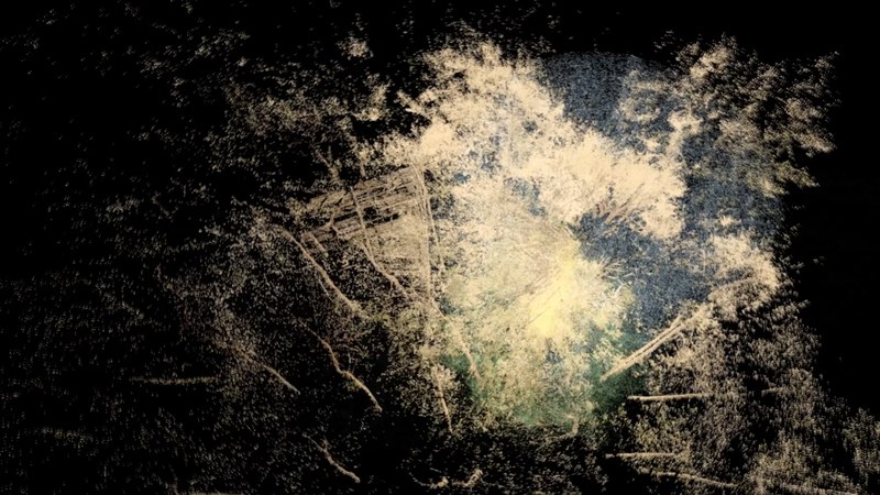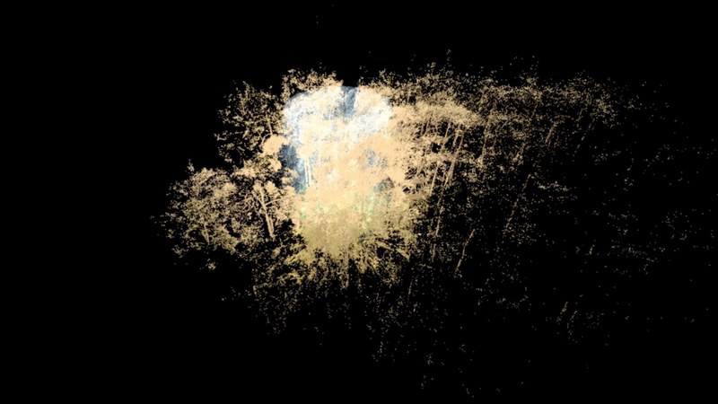 To create the Atmospheric Forest in VR, the scientific laser scanner was used to scan the Pfynwald in point cloud. The viewer can navigate through the emitting trees of virtual forest, and notice the watchtower, pink labels attached to the plants, measuring belts around the barks, and other scientific artefacts. The viewer also can observe the forest ecosystem from the bottom up, and follow the path through the tree trunk to get far up above the forest, becoming a part of the emitting forest ecosystem that connects 'terrestrial' and 'atmospheric'.