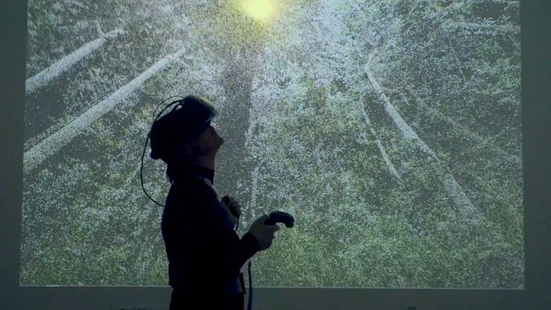Atmospheric Forest VR installation reveals patterns of this complexity by visualizing the data of volatile emissions and resin pressure in pine trees. It is an outcome of a three-year artistic research project on Pfynwald, an ancient Alpine coniferous forest, suffering from drought, which Swiss scientists have turned into a 'living observatory'. The data from the trees in both irrigated and dry areas of Pfynwald during one growing season were provided by the scientists.