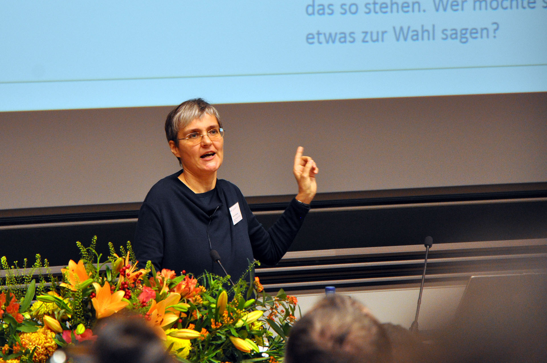 Sabina Larcher eröffnete den Forschungstag, der zum ersten Mal im Biozentrum der Universität Basel stattfand, das sich als sehr geeignet für eine nächste Durchführung empfahl.