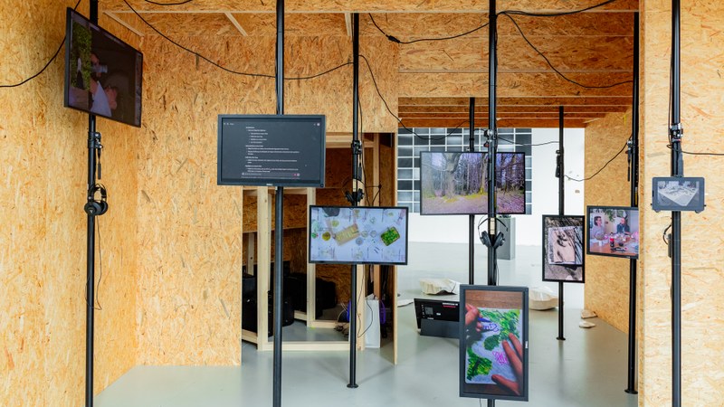 Die Bilder der Fotografin Pati Grabowicz bieten Einblicke in die in den verschiedenen Ausstellungen der Studiengänge im Hochhaus der HGK Basel, im Ausstellungsraum «Tank» sowie in der TransBona-Halle präsentierten experimentellen und zugleich kritischen Auseinandersetzungen mit den drängenden Fragen unserer Zeit und werfen einen Blick auf konkrete Lösungsansätze, um unsere gesellschaftliche Zukunft zu gestalten.