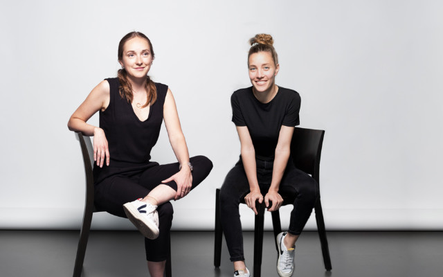 Rahel Mor (links) und Milly Stucki, Absolventinnen des Studiengangs Industriedesign an der HGK Basel FHNW, haben das vielseitig nutzbare Möbelstück entwickelt. Foto: Andre Hoenicke