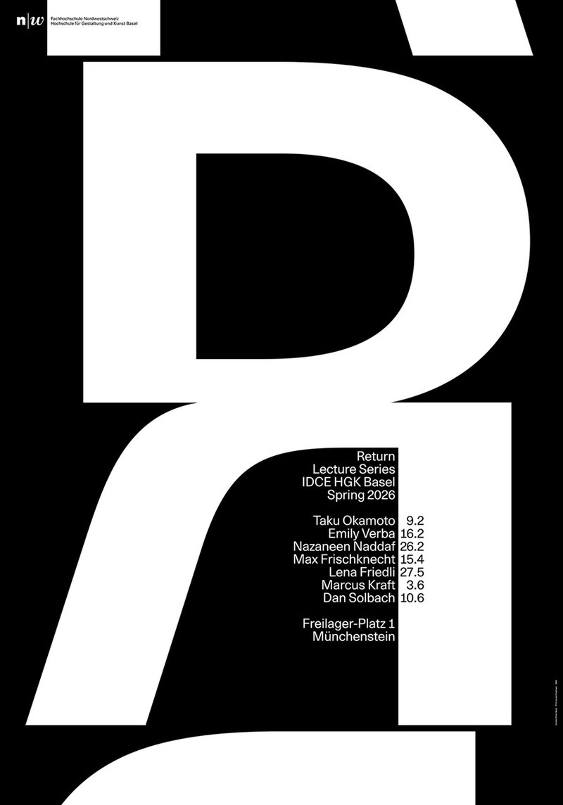 Die aktuelle Lecture Series des Institute Digital Communication Environments (IDCE) der HGK Basel steht unter dem Titel «Return» und findet im Zeitraum vom 9. März bis 10. Juni 2026 an der HGK Basel statt.