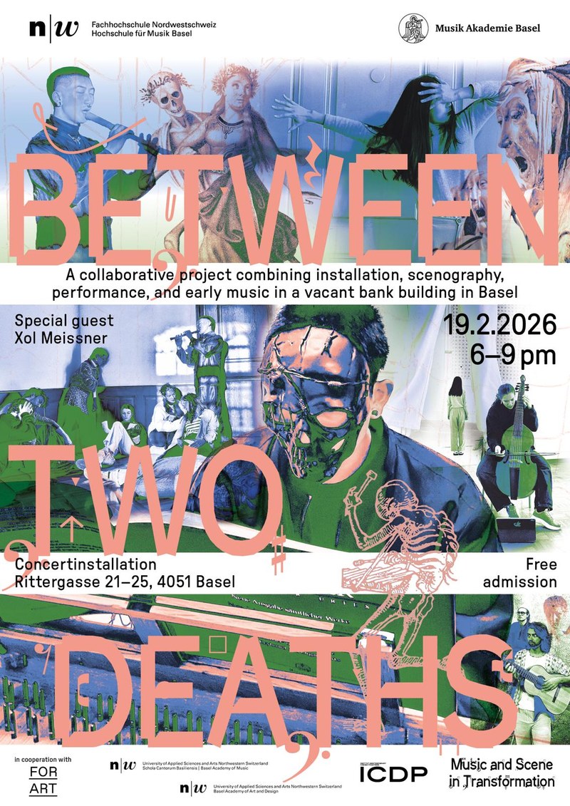 Am 19. Februar 2026 wird ein ehemaliges Bankgebäude in Basel zum Spielort der interdisziplinären Konzertperformance «Zwischen zwei Toden» mit rund 30 Master-Studierenden der Hochschule für Musik Basel und der HGK Basel.