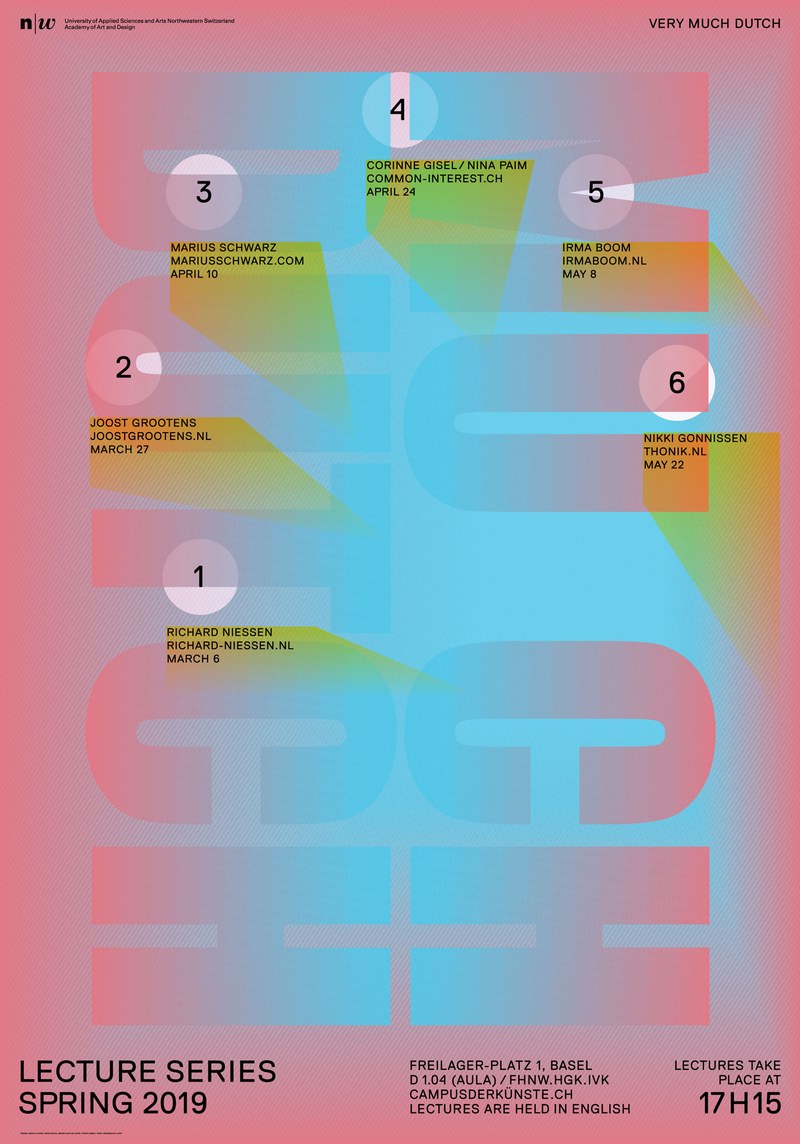 Für die Vortragsserie des Instituts Visuelle Kommunikation wurden Gestalterinnen und Gestalter eingeladen, welche selbst aus den Niederlanden stammen, sich das Land als Wunschdomizil gewählt oder dort ihr Studium absolviert haben.