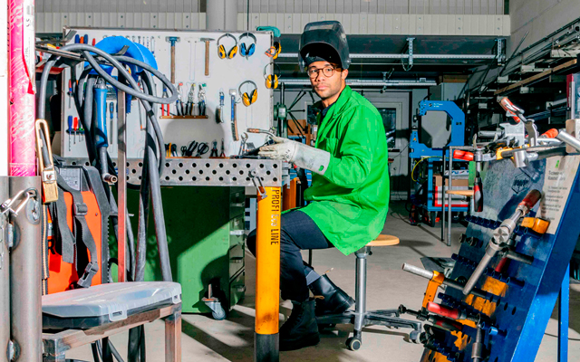 Die HGK Basel bietet mit ihren Ateliers, Labs und den zentralen Campus-Werkstätten ideale Bedingungen, um handwerkliche Neugier, das Erlernen von Techniken und digitales Know-how zu verbinden. Darüber hinaus steht allen Studierenden rund um die Uhr ein eigener Arbeitsplatz in den grossräumigen Ateliers zur Verfügung. Im Studiengang Industriedesign experimentieren Sie mit klassischen Werkzeugen und Maschinen der Holz-, Metall- und Kunststoffverarbeitung, aber auch mit modernsten Anlagen wie Schneidlaser, CNC-Fräser und 3-D-Druckern. Sie entwickeln Prototypen aus zahlreichen, verschiedenen Materialien, die im Rahmen des Studiums bereitstehen. Sie haben Zugriff auf das ‹Digital Integration Lab ›, in dem Sie beispielsweise mit Virtual Reality, 3-D-Scanning, Arduino sowie Raspberry Pi und AI arbeiten. Die Infrastruktur steht den Studierenden während 365 Tagen im Jahr offen.