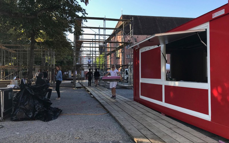 Das Festivalzentrum bietet wie an den vergangenen drei Festivals einen Ort zum Verweilen und Geniessen. Über ein halbes Jahr haben die Studierenden des Instituts Innenarchitektur und Szenografie der HGK | FHNW an einem neuen Entwurf und der Umsetzung gearbeitet. So entsteht ein neues Herzstück des Festivals – der ideale Ort, um zwischen den Vorstellungen anzustossen, gemütlich zu verweilen und den Festivalbesuch genussvoll abzurunden.