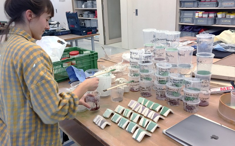 Es wird modelliert, plastiziert, konstruiert, mit Keramik gedruckt und es werden unterschiedliche Giesstechniken angewendet.
