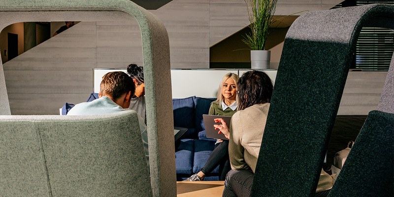 Dienstags und donnerstags sind die offenen Arbeitszonen des Studiengangs randvoll: Unsere Studierenden sitzen Schulter an Schulter – manchmal vertieft in ein gemeinsames Projekt, manchmal ganz für sich im Lernflow. Taucht eine Frage auf? Oft sind es die Mitstudierenden, die als erste zur Stelle sind und falls doch mal niemand weiterweiss, kann es gut sein, dass ein Floor Coach oder Dozent*in am Nachbartisch sitzt und dir weiterhelfen kann.