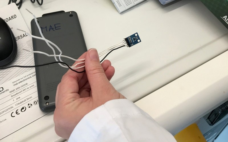 In der Vorlesung “Smart Sensor” lernen Studierende wie man auf dem Minicomputer Raspberry Pi Sensoren mit Python anspricht und programmiert. Das Besondere daran ist, dass die Studierenden das Erlernte in kleinen Projekten auch gleich live umsetzen. Sie setzen den programmierten Sensor beispielsweise in der Praxis ein, um die Reaktionszeit bei der Entstehung von Schwefel zu messen.