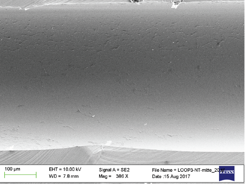 Vollblut besteht aus Wasser, Salz, Proteinen, Lipiden und intakten Erythrozyten. Diese neigen dazu, an Oberflächen oder bei Kontakt mit organischen Lösungsmitteln zu koagulieren. Wirksame die Ausfällungen im System sowie die Ablagerung von Biofilmen verhindern, sind daher von entscheidender Bedeutung. Die folgenden Rasterelektronenmikroskop-Aufnahmen zeigen den mittleren Abschnitt von drei Probenschleifen von LCMS-P80-Werkzeuge nach 500 Injektionen von Vollblutproben. Die Werkzeuge wurdenzwischen jeder Probe mit drei verschiedenen Verfahren gereinigt.