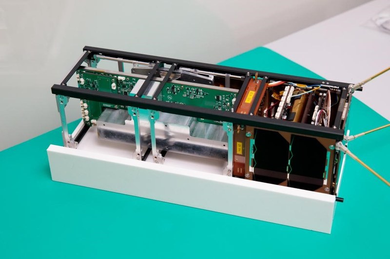 Der Nanosatellit «SpooQy-1» ist so gross wie ein Schuhkarton und hat nur eine Masse von 2.6 Kilogramm. (Foto: NUS National University of Singapore)