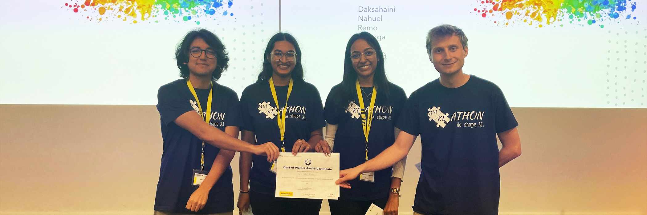 Ist es möglich, einen Text auf Deutsch mit KI-Hilfe genderneutral umzuformulieren? Diese Frage wurde am MAKEathon gestellt. Zwei FHNW-Wirtschaftsinformatik-Studentinnen, Saranga Sivasubramaniam und Daksahaini Chellappah, nehmen zum ersten Mal an der zweitägigen Challenge teil und holen im Team mit zwei weiteren Studenten den ersten Preis.