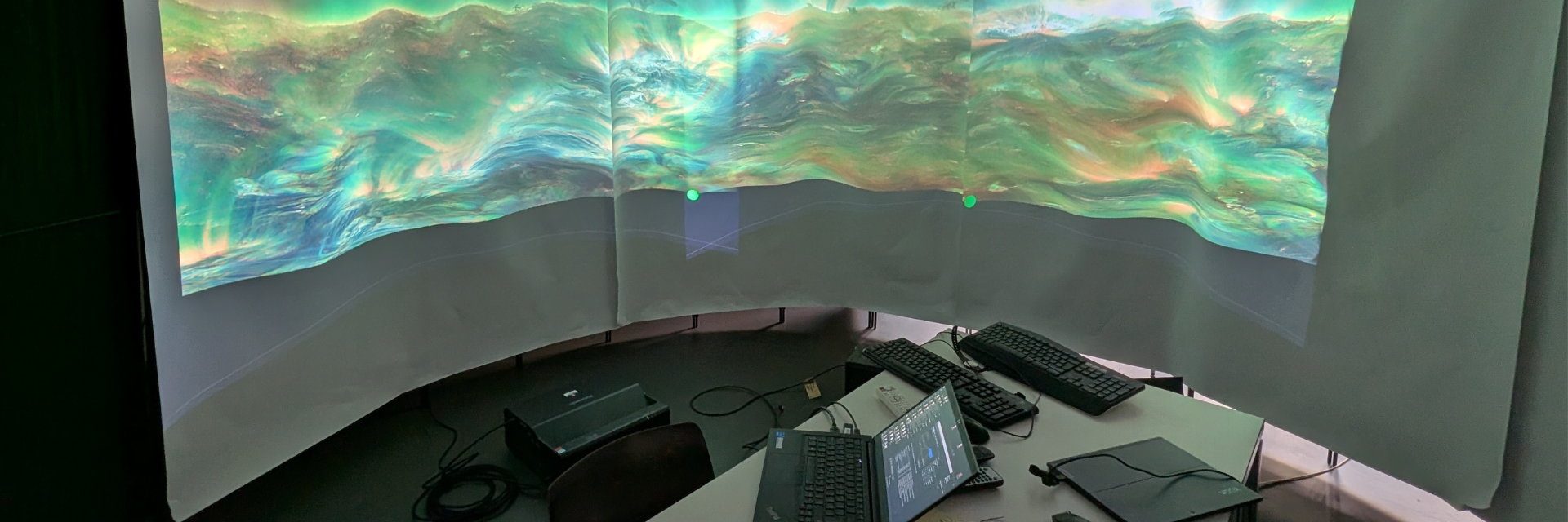 Eine weitere zentrale Aufgabe der Bachelor-Arbeit betraf die geometrische Umwandlung der runden Sonnenbilder. Diese wurden ohne Verzerrung auf eine zylindrisch gewölbte Projektionsfläche übertragen, um die Illusion einer Perspektive nahe an der Sonnenoberfläche zu erhalten: