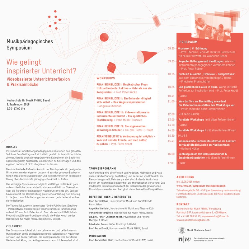Die Tagung ist zugleich Vernissage für die Publikation „Einblicke – Perspektiven, Videoreflexion von Instrumental- und Gesangsunterricht“ von Prof. Peter Knodt. Das Lehrwerk (mit DVD) ist ein Produkt langjähriger Grundlagenarbeit, die Peter Knodt an der Hochschule für Musik FHNW, Basel hierzu leistet.