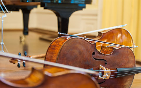 Streichinstrumente Violine, Viola, Violoncello, Kontrabass