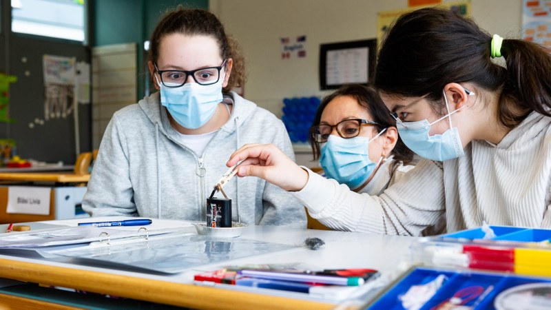 «Es wäre mir zeitlich schlicht nicht möglich, für alle meine Schülerinnen und Schüler diese Materialien und Experimente zusammenzutragen», sagt Silvia Fröhlicher. Daher sei sie froh, mit dem MobiLab zusammenarbeiten zu können. Chemie und Physik gehören seit dem neuen Lehrplan auch in die Stundentafel der Primarstufe. Wie viele Lehrpersonen hatte auch Fröhlicher anfänglich Zweifel, ob sie diesen Inhalten gewachsen sei. «Für mich war klar: Wenn ich einen erlebnis- und lehrreichen Unterricht in diesen Disziplinen anbieten will, brauche ich eine Weiterbildung.» Diese hat sie an der PH FHNW absolviert und kann dadurch mit dem MobiLab arbeiten. Nun wage sie sich an die NaTech-Themen heran und mache dieselben Erfahrungen wie die Schülerinnen und Schüler – «auf Augenhöhe, mit einem leichten Wissensvorsprung», schmunzelt sie. Sie meint weiter: «Als Frau bin ich erst noch ein gutes Vorbild – Physik und Chemie haben ja nichts mit dem Geschlecht zu tun.» Offen bleiben, ständig dazuzulernen, das sei für sie als Lehrperson elementar, meint Fröhlicher, die bereits seit 18 Jahren unterrichtet. «Meine Neugier ist Teil der pädagogischen Haltung, das wirkt sich auch auf die Motivation der Klasse