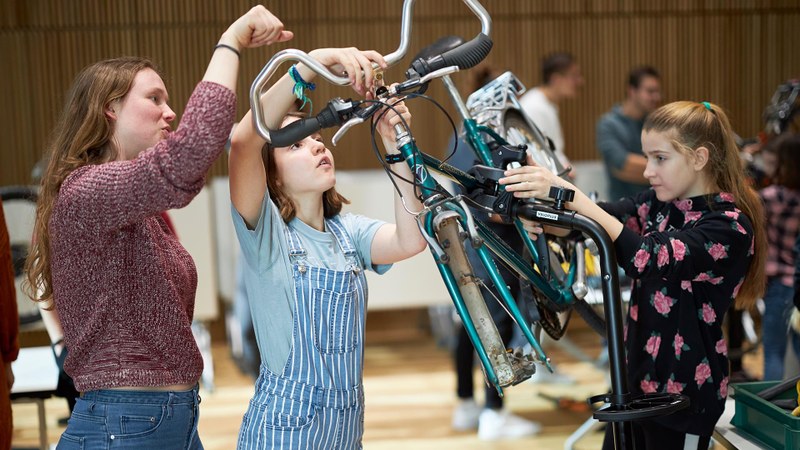 Gemeinsam forschen: Studierende der PH dekonstruieren mit Schülerinnen und Schülern Velos nach allen Regeln der Kunst. Foto: Matthias Dietiker