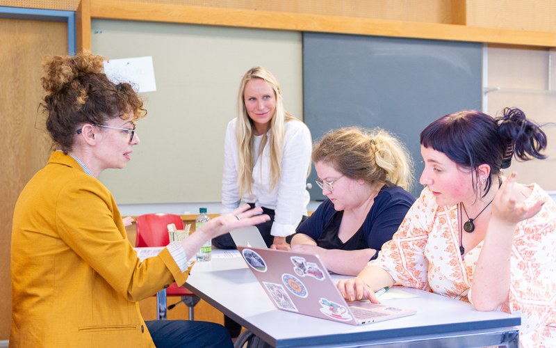 Sarah Stommel und Annalena Josch bereiteten das Seminar «Reproduktion von Differenz in der Bildungsbiografie» gemeinsam vor und führten die Lehrveranstaltung dann auch zusammen durch. «Mir ist es besonders wichtig, Theorie und Praxis zu verknüpfen und den Studierenden den Mehrwert der wissenschaftlichen Denkweise aufzuzeigen», sagt Sarah Stommel. Dies im Wissen, dass der Praxisbereich für die Studierenden ebenfalls sehr wichtig ist. «Die Theorie ist nötig, um das professionelle Handeln zu begründen», ergänzt Annalena Josch. «Sie stellt sicher, dass Lehrpersonen nicht ausschliesslich intuitiv handeln.» Mit diesen Prämissen im Kopf planten Stommel und Josch gemeinsam die Lehrveranstaltung. «Wir orientierten uns dabei an meinen früheren Durchführungen», so Stommel, «bestückten diese aber mit Beispielen aus Annalena Joschs Praxis und versuchten so, eine engere Verbindung zu den Herausforderungen im Berufsalltag zu schaffen.» Während der Veranstaltung selbst agierten sie im Teamteaching, liessen Methoden aus der Schule einfliessen und holten auch regelmässig die Bedürfnisse der Studierenden ab. Der Austausch mit Studierenden ist intensiver und praxiszentrierter. Die Reaktionen und Rückmeldungen der Studierenden auf dieses Teamteaching waren positiv. «Für mich war es eindrücklich zu sehen, wie intensiv die Studierenden mitmachten. Das war sicherlich den Methoden zu verdanken, die Annalena Josch aus der Praxis einbrachte», so Sarah Stommel.