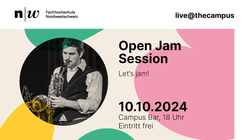 Wir starten in den Herbst mit einer Open Jam Session. Blues, Pop, Jazz, Funk, Latin. Musikalische Talente der FHNW, bringt Eure Instrumente und Songs und «let’s jam»! Singer-Songwriters der FHNW – «the mic is yours». Die Combo der FHNW Big Band eröffnet das Set und begleitet Dich danach stilsicher auf deinem Instrument.
