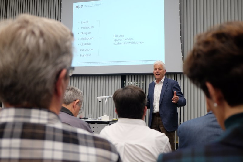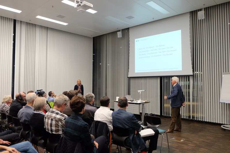 In der anschliessenden Diskussion mit Sabina Larcher, der neuen Direktorin der PH FHNW, rückte der Fokus schliesslich auf die Bedeutung der Bildung. Die Bildung hat (u.a.) den Auftrag, Reduktionsstrategien für das Bewältigen des Lebens zu vermitteln - ob das auch zu mehr Lebensglück führt, blieb im Raum stehen. Erfahrung und Alter alleine führen noch nicht automatisch zum besseren Umgang mit Komplexität.