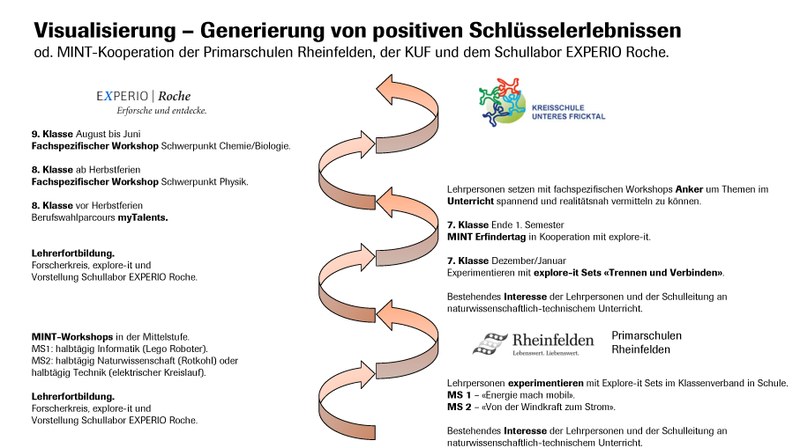 Die Kreisschule Unteres Fricktal setzt in Zusammenarbeit mit EXPERIO Roche das sogenannte Spiralcurriculum MINT um, das den Schüler/innen die Möglichkeit bietet, neben dem Schulunterricht an besonderen MINT-Angeboten teilzunehmen, so bspw. am MINT-Tag und am Berufswahlparcours „myTalents“. Ziel ist es, das Interesse der Schülerinnen und Schüler an MINT zu stärken und ihnen eine angemessene Grundbildung in den MINT-Fächern anzubieten. Dadurch sollen sie zu einer schulischen und beruflichen Zukunft im naturwissenschaftlich-technischen Bereich motiviert werden. Zusätzlich nehmen auch die Lehrpersonen an Weiterbildungen teil, um neue Impulse für den MINT-Unterricht zu erhalten. Inwieweit die beschriebenen Ziele erreicht werden, wird im Rahmen der wissenschaftlichen Begleitstudie untersucht. Im Zeitraum von 2018 bis 2022 werden zwei Schüler/innen-Jahrgänge über drei Schuljahre hinweg zu vier Messzeitpunkten per Fragebogen befragt, um Entwicklungen im Interesse und im Selbstkonzept nachzuweisen sowie mögliche Veränderungen bei der Berufs- bzw. Fachwahl. Über Interviews mit ausgewählten Schülerinnen und Schülern und Lehrpersonen wird zudem untersucht, welche Impulse durch die Zusammenarbeit mit EXPERIO Roche für den MINT-Unterricht entwickelt und umgesetzt werden.