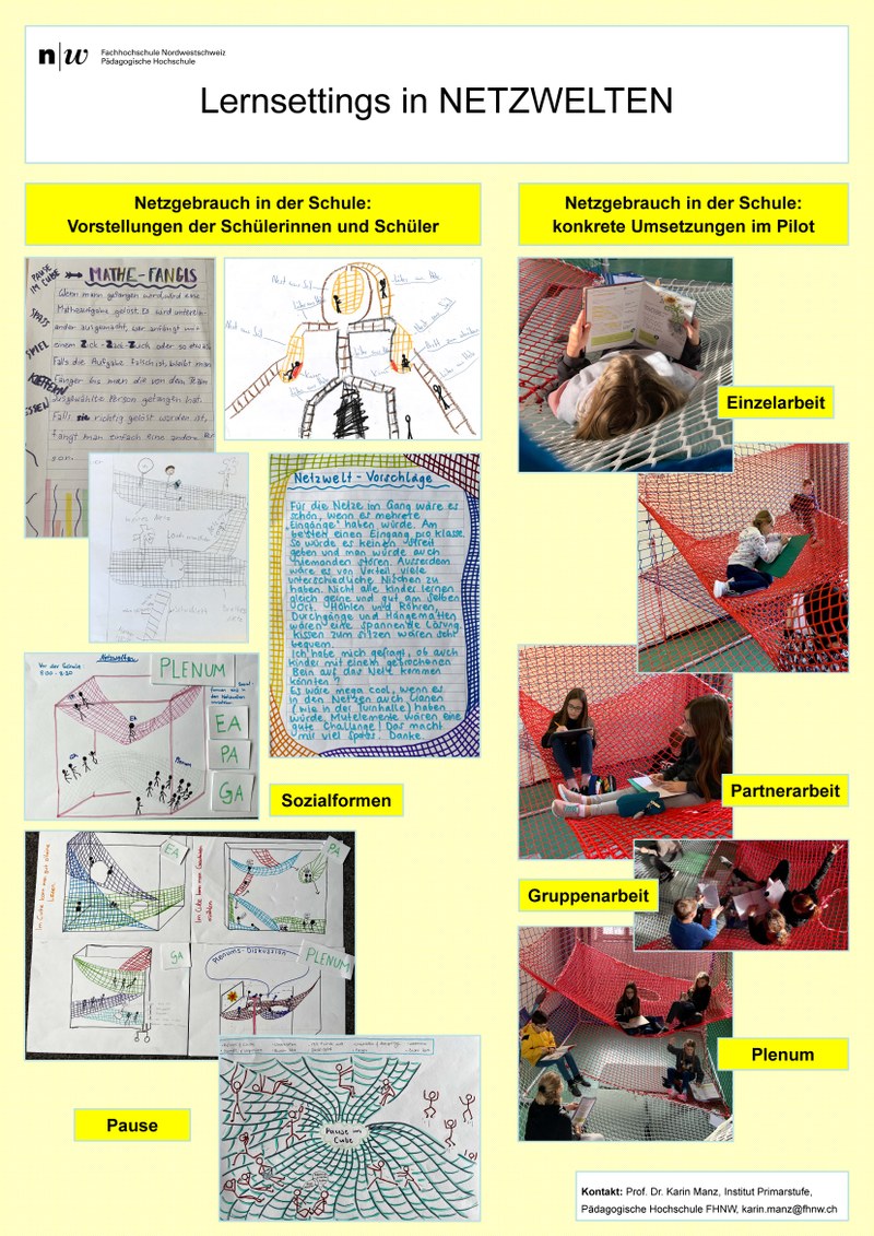 Das Projekt «Netzwelten – Lernen in Bewegung» entwickelte und testete mit begehbaren Netzen eine veränderte Lernraumgestaltung in der Primarschule, um Lernstörungen zu entschärfen und gesundheitsfördernd zu wirken. Wir untersuchten, wie sich schulisches (kognitives) Lernen, Konzentration, Lernmotivation und -bereitschaft, Lernerfolg von Kindern sowie Unterrichtskultur verändert, wenn der natürliche Bewegungsdrang von Kindern beim täglichen Lernen im regulären Unterricht mehr Bedeutung erhält, und wie Netzflächen als innovativer Lernraum die Umsetzung des LP21 («Schule als Gestaltungs-, Lern- und Lebensraum») unterstützen.