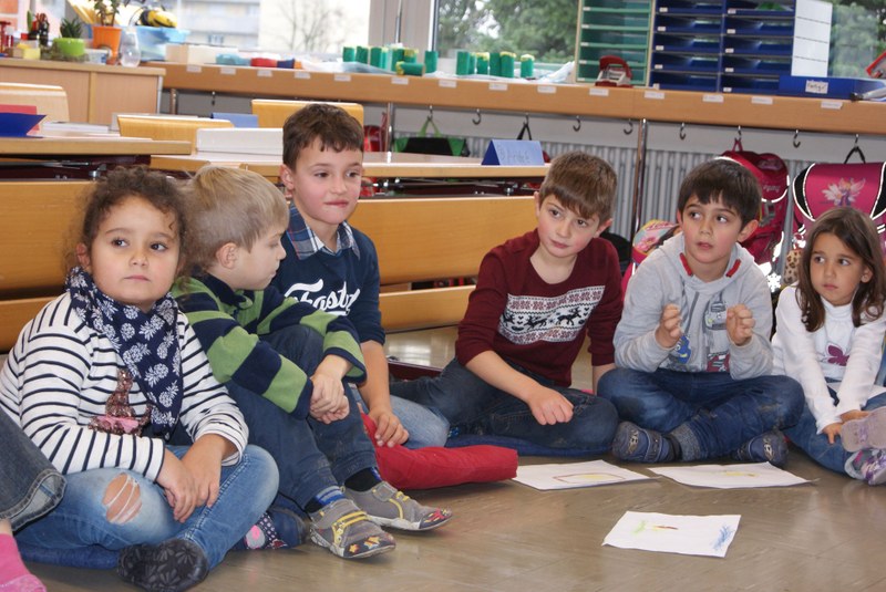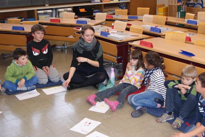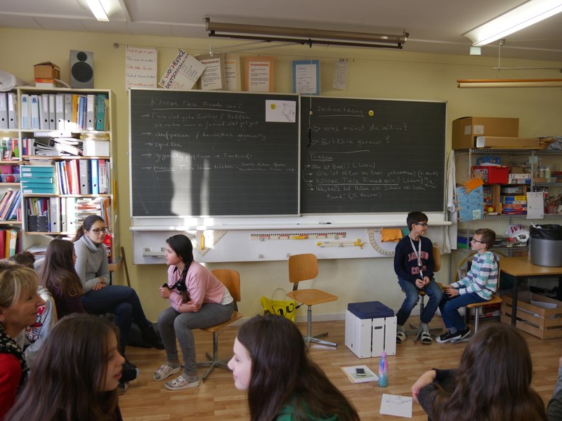 «Durch die Suche nach Unterschieden und Gemeinsamkeiten zwischen Tier und Mensch näherten sich die Kinder in mehreren philosophischen Gesprächen der philosophischen Anthropologie, die anschliessend aufgefächert wurde in die Fragen nach Denken, Fühlen und Sprache der Tiere.»