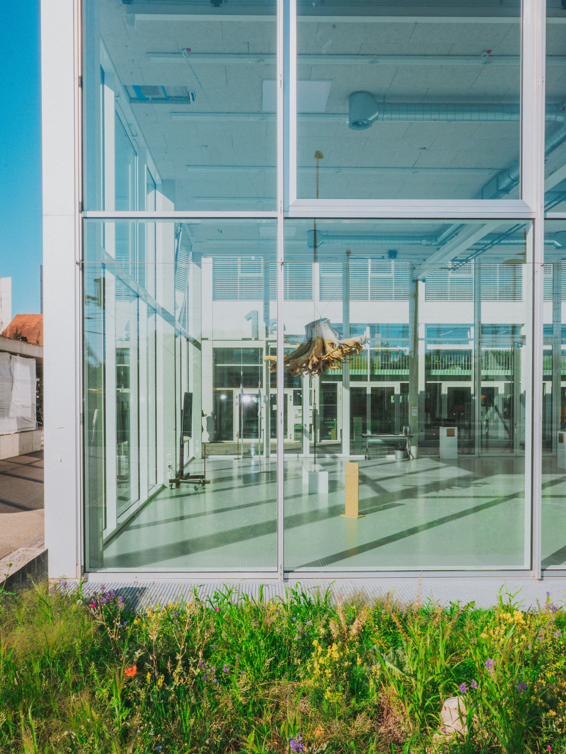 Unmittelbare Nachbar:innen der HGK Basel sind unter anderem der Ausstellungsraum und die Bibliothek der Schule für Gestaltung Basel (SfG), das HEK Haus der elektronischen Künste, das Archivgebäude des Architekturbüros Herzog & de Meuron, das Kunsthaus Baselland, die Ateliers des internationalen Stipendienprogramms Atelier Mondial und RadioX. Foto: Pati Grabowicz