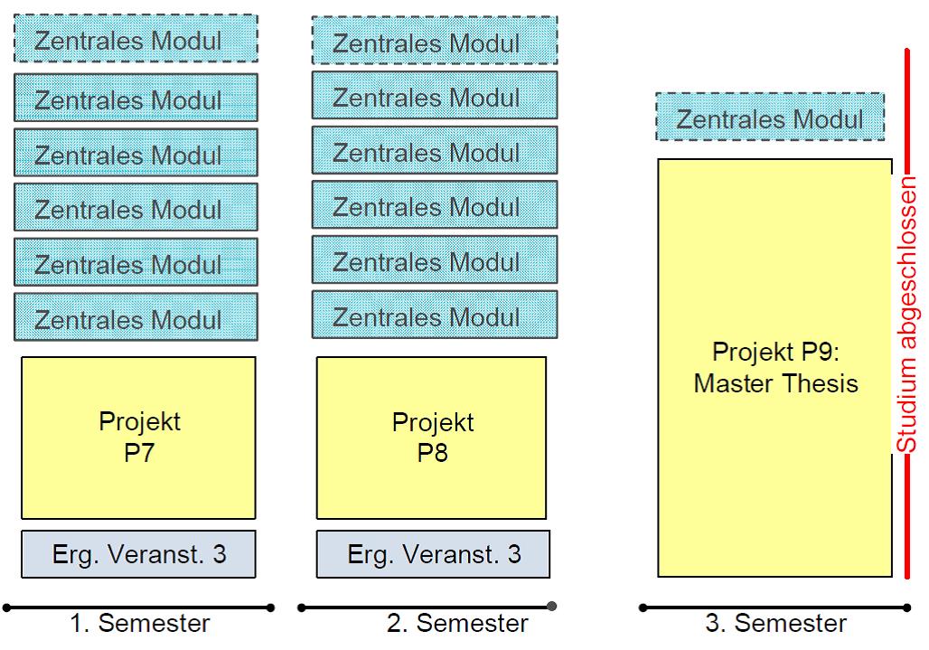 - 30 ECTS durch die Fachliche Vertiefung (Projektarbeiten, ergänzende Veranstaltungen)