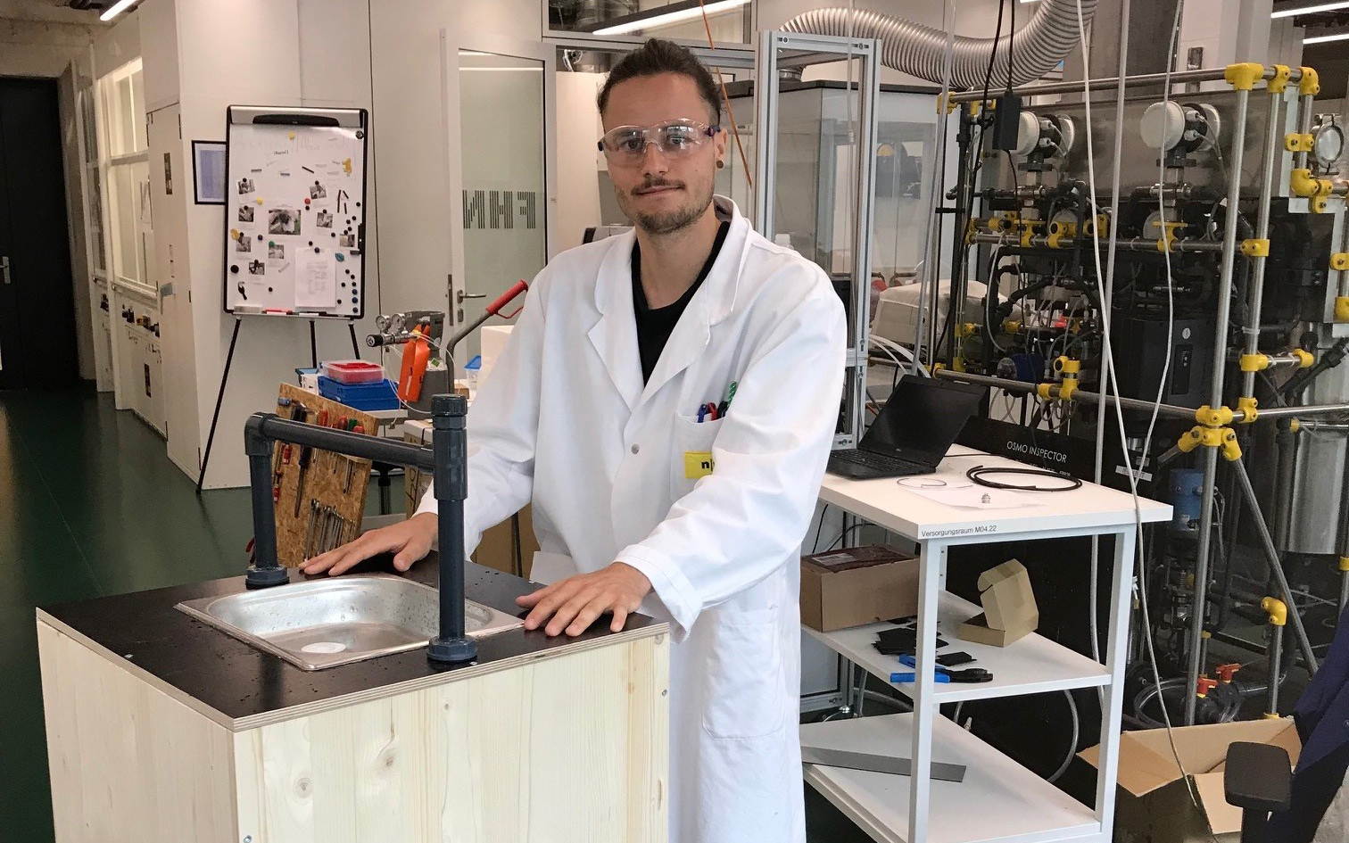 Und was ist nun Dominics Beitrag? «Das Herzstück des Systems ist ein Membranfilter, dessen Poren so klein sind, dass Bakterien und Viren herausgefiltert werden sollten. So ist das gefilterte Wasser frei von den meisten krankheitserregenden Mikroorganismen», erklärt Dominic. «Ich forsche an der stetigen Verbesserung dieser Membranfilter. Wie verhalten sich die Filter mit der Seife? Wann verstopfen sie und wie kann das verhindert werden?» Derzeit testet Dominic auch neue Membran-Prototypen. Ziel dabei ist es, das Wasser noch länger sauber halten zu können. «Zusätzlich arbeite ich an einem Designkonzept zur Verkleinerung der kommunal genutzten Anlagen für den Gebrauch in Privathaushalten», fügt er an.