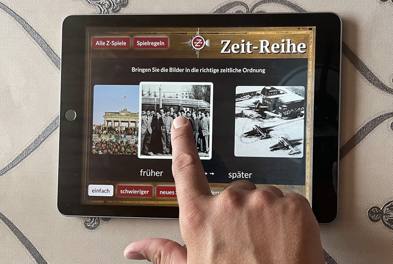 Hanspeter (78) sitzt mit zwei Jugendlichen vor einem Tablet. Im Lautsprecher erzählt eine Frauenstimme, wie sie das neue Töffli vom Bruder schrottreif gefahren hat. Gleichzeitig sind auf dem Bildschirm einige Fotos von früher zu sehen. Gemeinsam diskutieren die Jugendlichen und der Mann nun, welche Fotos zur Erzählung passen und wählen eines aus. Hanspeter verknüpft das Gehörte mit eigenen Erinnerungen und baut damit eine Brücke zwischen den beiden weit auseinanderliegenden Generationen.