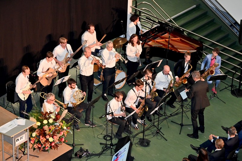 Für zahlreiche Lacher sorgte anschliessend der Tüftler unter den Schweizer Kabarettisten: Stefan Heuss, Erfinder irrwitziger Maschinen aller Art präsentierte seine Konstruktionen, von den unzerstörbaren Handyhülle aus Salzteig bis hin zum fast schon legendären Robifrost – dem Hundekot-Vereiser zum besseren Aufheben. Auch für musikalische Leckerbissen war dank der FHNW Big Band gesorgt.