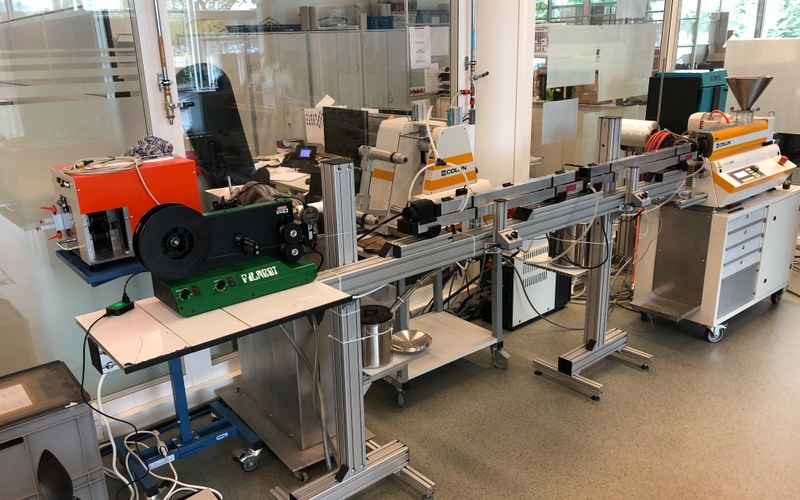 Mit der am Institut für Kunststofftechnik FHNW neu entwickelten Filamentextrusionsanlage lassen sich kundenspezifische Filamente aus innovativen Materialien mit unterschiedlichen Zusatzstoffen in Kleinmengen herstellen.