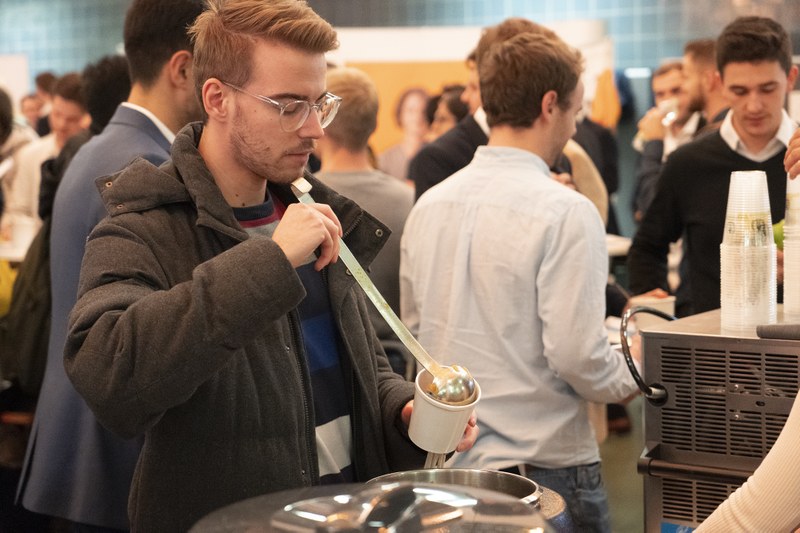 Die Stimmung war entspannt: Auf einer Couch sitzen ein paar Studierende mit Bier und diskutieren angeregt zusammen, ein junger Mann im Anzug richtet seine Krawatte, jemand schlürft seine Gemüsesuppe. Neben dem kulinarischen Menü konnten die Besucherinnen und Besucher der Langen Nacht der Karriere aus einem grossen Programm an Dienstleistungen auswählen: 30 Unternehmen wie Swiss, ABB, UBS oder Zühlke warben um neue Mitarbeitende, 14 Firmen präsentierten sich auf dem Company-Catwalk, 40 professionelle Fotoshootings wurden gemacht, 100 CV-Checks durchgeführt, 45 Personen versuchten sich beim Career-Speed-Dating, 20 Vorträge wurden gelauscht und 40 LinkedIn-Profile erhielten einen Check-up.