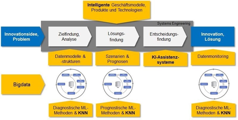Abb. 3: Innovationsprozess mit Machine Learning (ML), Künstlichen Neuronalen Netzen (KNN) und KI-Assistenzsystemen (IBE, FHNW)