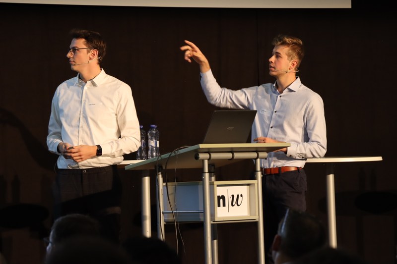 Die beiden Keynote-Referenten Dr. Stephan Wartmann, CEO der BRUGG Group, und Alex Heinemann, Head of Sustainability der BRUGG Group sowie Absolvent des Studiengangs WIng haben in ihrer eindrücklichen Präsentation unter dem Titel «Starten statt Warten» aufgezeigt, mit welchen Schritten die BRUGG Group den Weg in die Nachhaltigkeit beschreitet. Vor drei Jahren hat die BRUGG Group im Rahmen eines WIng-Studierendenprojektes erste CO₂-Fussabdruckmessungen gemacht. Darauf aufbauend ist ein Nachhaltigkeitskonzept entwickelt worden, welches die Strategie der BRUGG Group massgeblich prägt. Die BRUGG Group verkauft heute erfolgreich verschiedene Produkte im Nachhaltigkeitsbereich und ist mit ihrer Nachhaltigkeitsstrategie auch auf die kommenden Regulierungen in diesem Bereich vorbereitet.