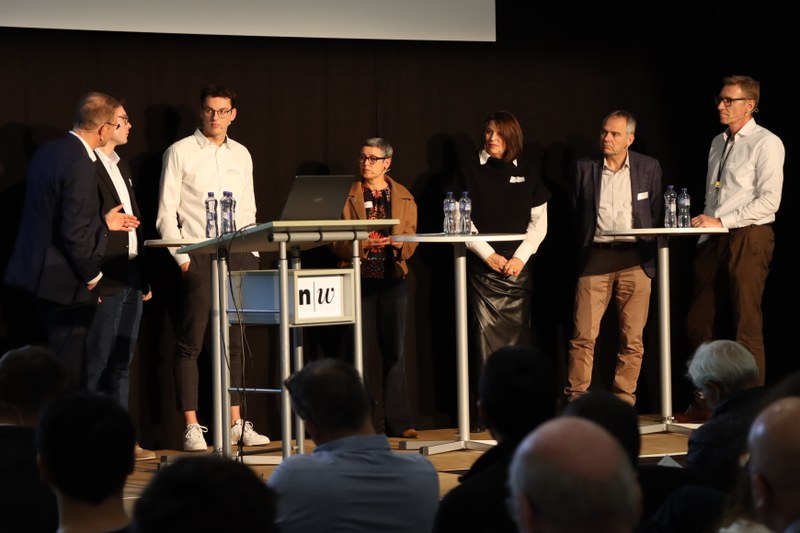 Zum Schluss wurde das Thema kritisch beleuchtet in einer Podiumsdiskussion mit der Fragestellung «Nachhaltigkeit in Unternehmen – nur ein Kostenfaktor?» unter der Leitung von Prof. Dr. Ruth Schmitt, Leiterin Ausbildung Hochschule für Technik FHNW. Die Teilnehmenden waren sich einig: Das Thema Nachhaltigkeit bietet Chancen für innovative Lösungen und mehr interdisziplinäre Zusammenarbeit.