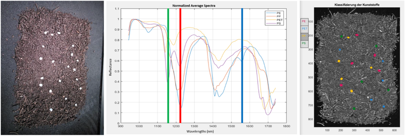 On all matrix backgrounds could the ANN successfully detect and identify the four reference plastic materials at particle sizes that ranged from 2 – 3 mm diameter pieces, at a rate that approached 100% accurate charact­eri­zation. Future development of the ANN is currently being conducted to include a wider variety of plastic polymer types as well as everyday plastics and how parameters such as color, shape, moisture, or surface contamination influence the plastic reflectance spectra.