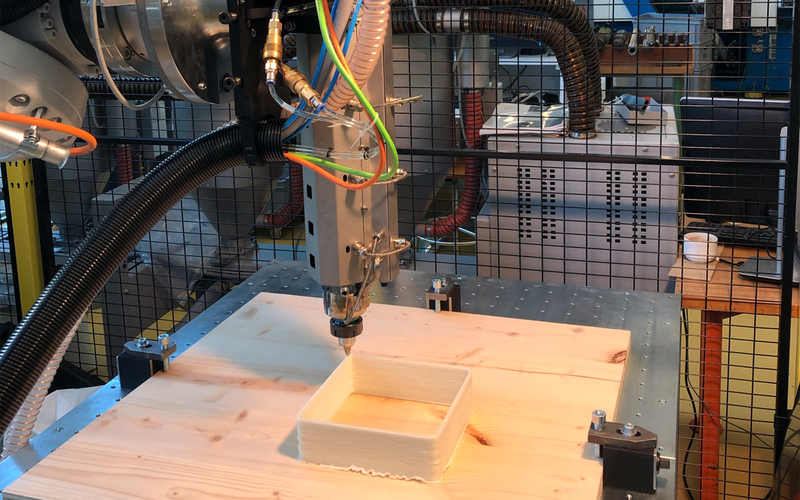 Die robotergestützte additive Fertigung ist eine relativ neuartige, aber vielversprechende Technologie, um auch grössere Kunststoffbauteile wirtschaftlich herzustellen.
