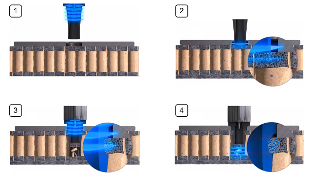 Multi-Material-Verbindungen sind ein Schlüsselelement für die Anwendung von Leichtbau im Transportbereich. Die Firma MultiMaterial-Welding AG hat eine innovative Plattform aus verschiedenen Produkten und Lösungen entwickelt und patentiert, die eine neue Methode zum Verbinden unterschiedlicher Materialien bietet. Eine davon ist die MM-Welding® LiteWWeight®-Technologie, die speziell für Sandwichstrukturen mit Waben- und geschäumten Kernmaterialien ausgelegt ist. Mittels Ultraschallenergie wird ein thermoplastisches Verbindungselement durch die Deckschicht in die poröse Struktur des Kerns eingebracht. Aufgrund der Ultraschallanregung schmilzt das thermoplastische Verbindungselement an der Grenzfläche partiell auf, infiltriert die poröse Struktur und stellt eine hoch beanspruchbare kraft- und formschlüssige Verbindung mit dem Substrat her.