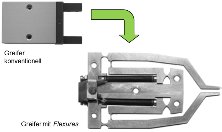Beispiel eines Greifers als Festkörpermechanismus («Flex-Greifer»)
