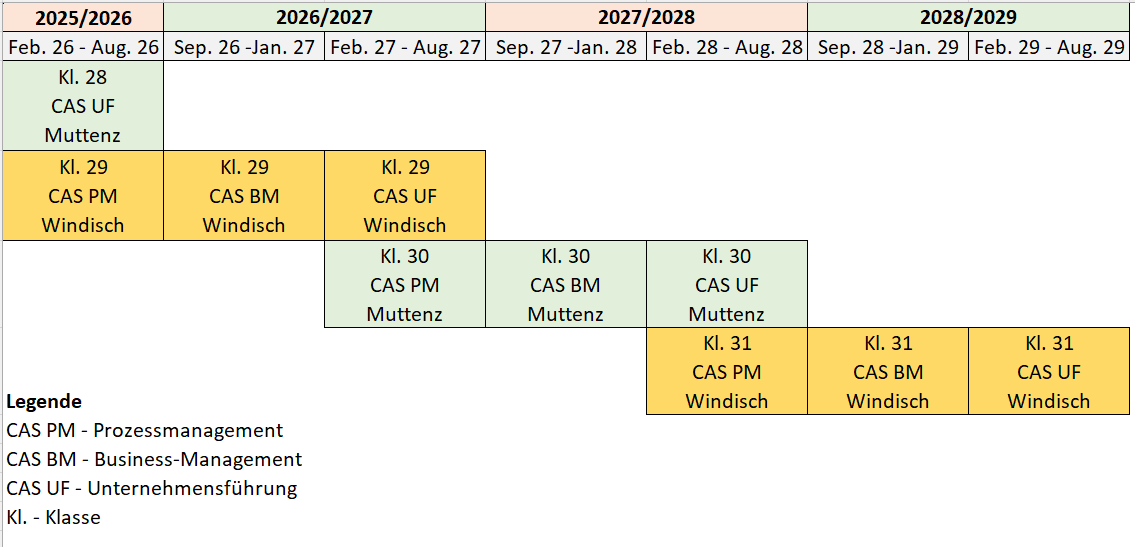 Das Studium ist modular aufgebaut. Es besteht aus drei Zertifikatskursen (CAS) und einer MAS-Thesis. Die Zertifikatskurse können in beliebiger Reihenfolge sowie auch einzeln absolviert werden. Besonders hervorzuheben sind Gruppenprojekte, mit welchen in zwei Semestern Problemlösungen aus der realen Geschäftswelt bearbeitet werden.